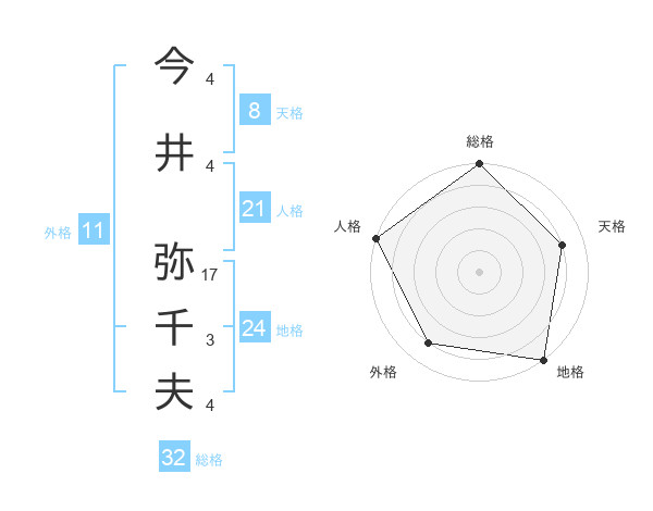 今井 弥千夫さんを姓名の画数から五運を鑑定