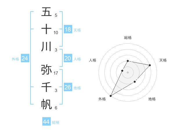 五十川 弥千帆さんを姓名の画数から五運を鑑定