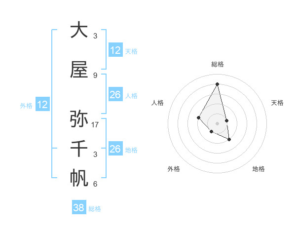 大屋 弥千帆さんを姓名の画数から五運を鑑定