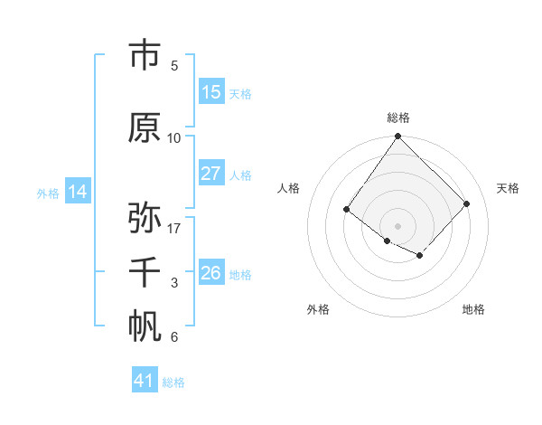 市原 弥千帆さんを姓名の画数から五運を鑑定