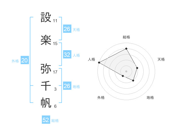 設楽 弥千帆さんの天格は26画の2点!