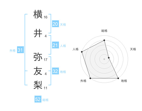 横井 弥友梨さんを姓名の画数から五運を鑑定