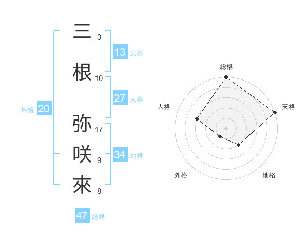 三根 弥咲來さんの総格は47画の5点!