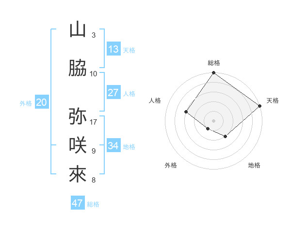 山脇 弥咲來さんを姓名の画数から五運を鑑定