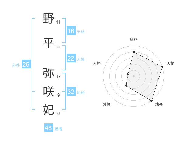 野平 弥咲妃さんを姓名の画数から五運を鑑定