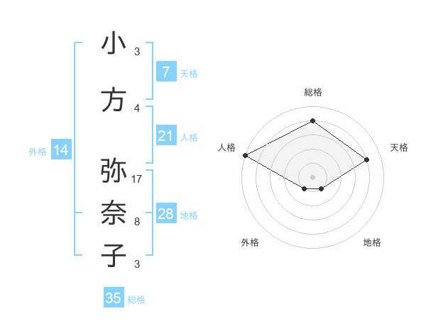 小方 弥奈子さんの総格は35画の4点!