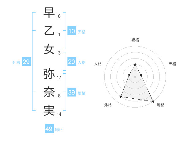 早乙女 弥奈実さんを姓名の画数から五運を鑑定