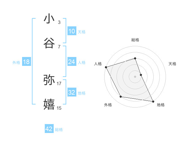 小谷 弥嬉さんの総格は42画の3点!