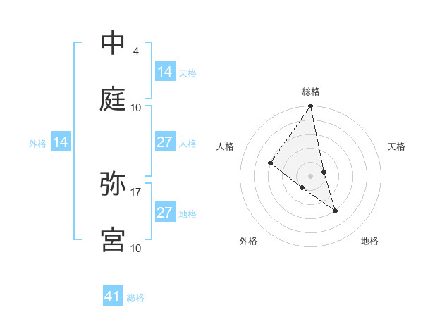 中庭 弥宮さんの総格は41画の5点!
