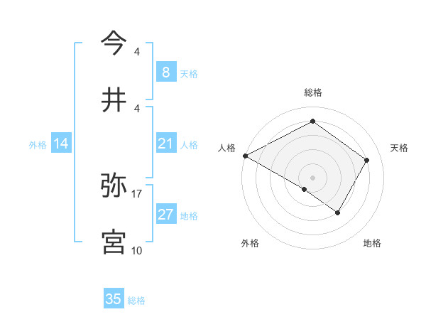 今井 弥宮さんの総格は35画の4点!