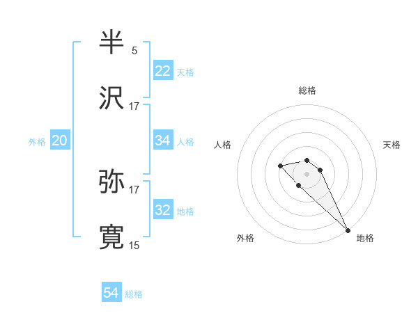 半沢 弥寛さんを姓名の画数から五運を鑑定