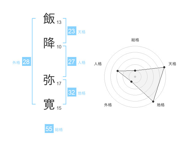 飯降 弥寛さんの総格は55画の1点!