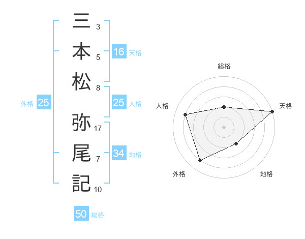 三本松 弥尾記さんを姓名の画数から五運を鑑定