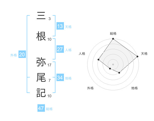 三根 弥尾記さんを姓名の画数から五運を鑑定