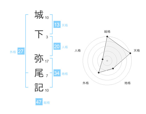 城下 弥尾記さんの総格は47画の5点!