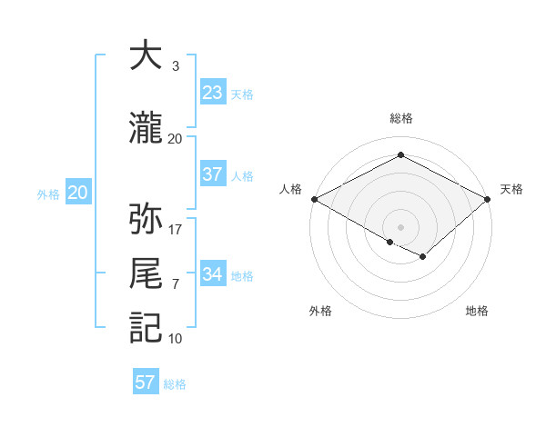 大瀧 弥尾記さんを姓名の画数から五運を鑑定