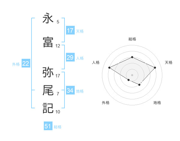 永富 弥尾記さんを姓名の画数から五運を鑑定