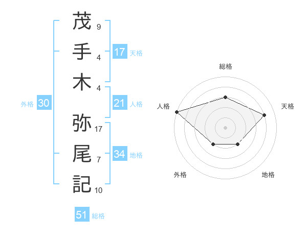 茂手木 弥尾記さんの総格は51画の3点!