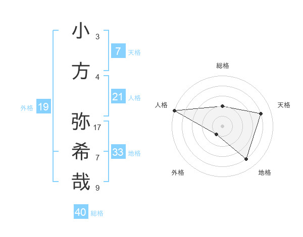 小方 弥希哉さんを姓名の画数から五運を鑑定