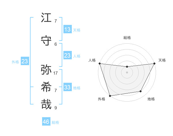江守 弥希哉さんの天格は13画の5点