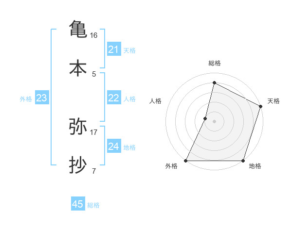 亀本 弥抄さんの外格は23画の5点!