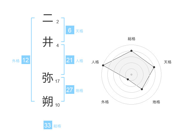 二井 弥朔さんを姓名の画数から五運を鑑定