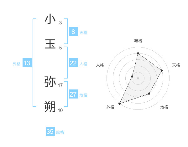 小玉 弥朔さんを姓名の画数から五運を鑑定