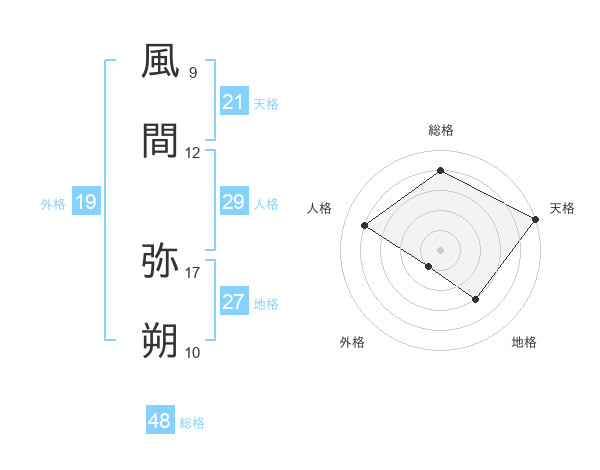 風間 弥朔さんの天格は21画の5点!