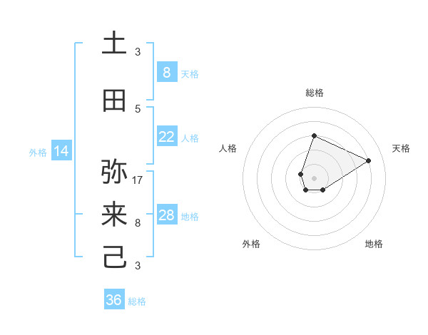 土田 弥来己さんを姓名の画数から五運を鑑定