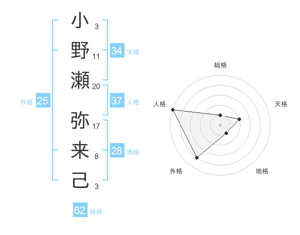 小野瀬 弥来己さんを姓名の画数から五運を鑑定