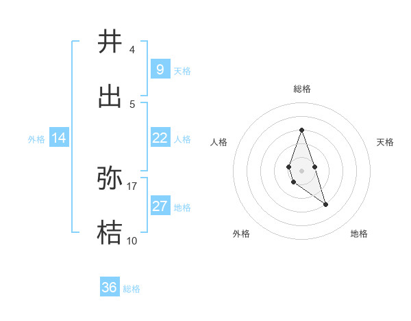 井出 弥桔さんを姓名の画数から五運を鑑定