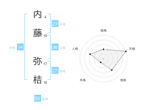 内藤 弥桔さんを姓名の画数から五運を鑑定