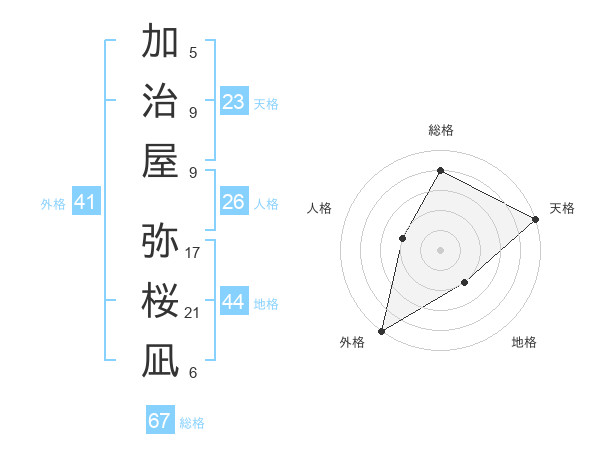 加治屋 弥桜凪さんの天格は23画の5点!