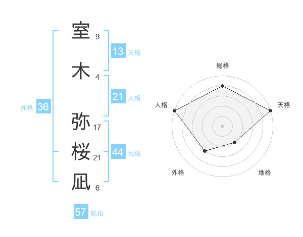 室木 弥桜凪さんの総格は57画の4点!