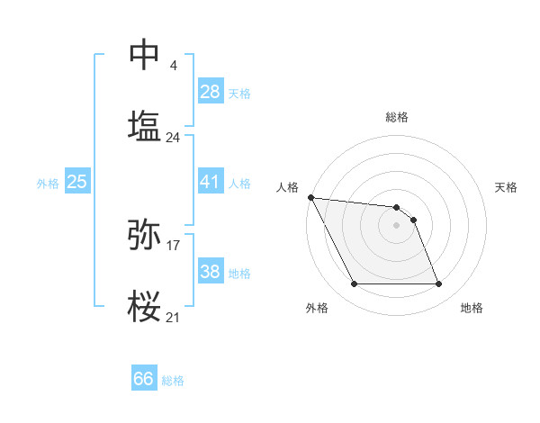 中塩 弥桜さんの人格は41画の5点!