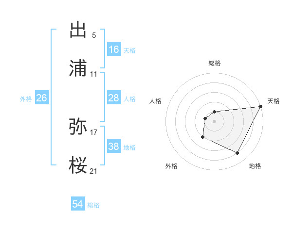 出浦 弥桜さんを姓名の画数から五運を鑑定