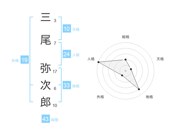 三尾 弥次郎さんを姓名の画数から五運を鑑定