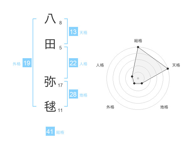 八田 弥毬さんの総格は41画の5点!