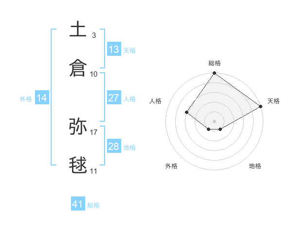 土倉 弥毬さんの総格は41画の5点!