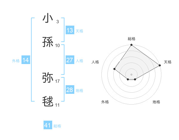 小孫 弥毬さんを姓名の画数から五運を鑑定