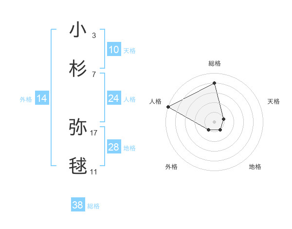 小杉 弥毬さんの総格は38画の4点!