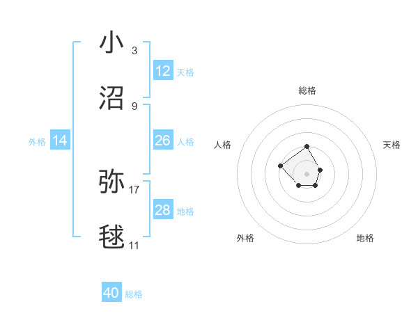 小沼 弥毬さんの総格は40画の2点!