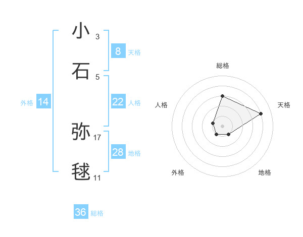 小石 弥毬さんを姓名の画数から五運を鑑定