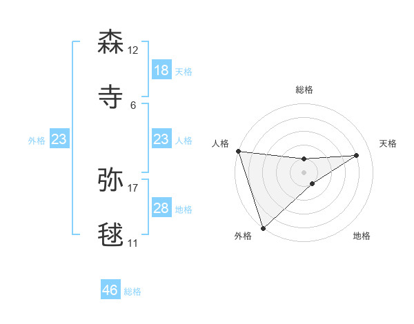森寺 弥毬さんの天格は18画の4点!