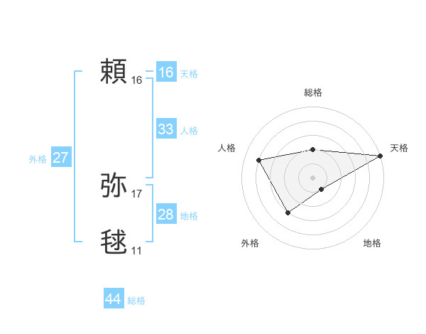 頼 弥毬さんの総格は44画の2点!