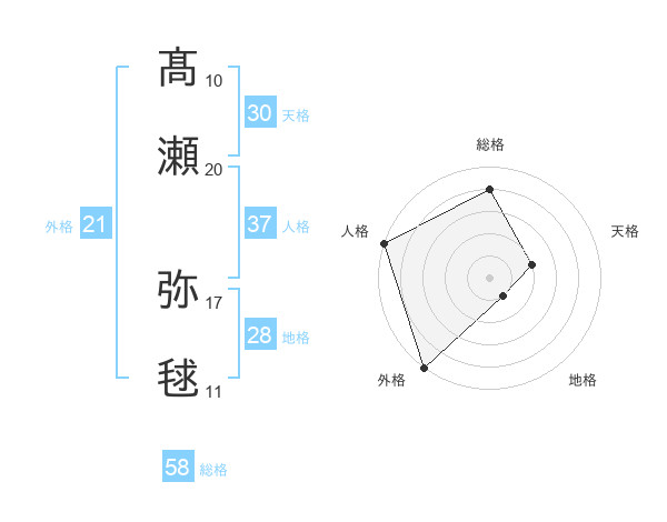 髙瀬 弥毬さんの外格は21画の5点!