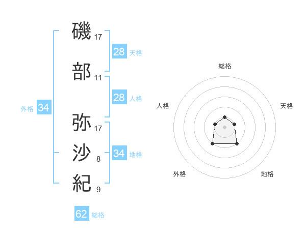 磯部 弥沙紀さんを姓名の画数から五運を鑑定