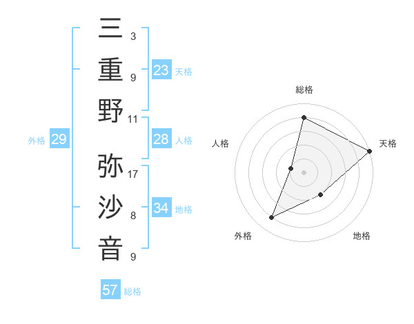 三重野 弥沙音さんの外格は29画の4点!