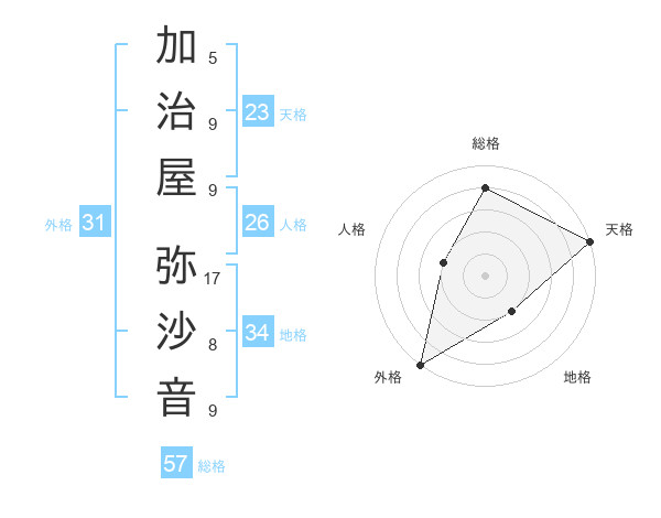 加治屋 弥沙音さんを姓名の画数から五運を鑑定