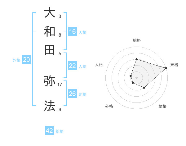 大和田 弥法さんの総格は42画の3点!